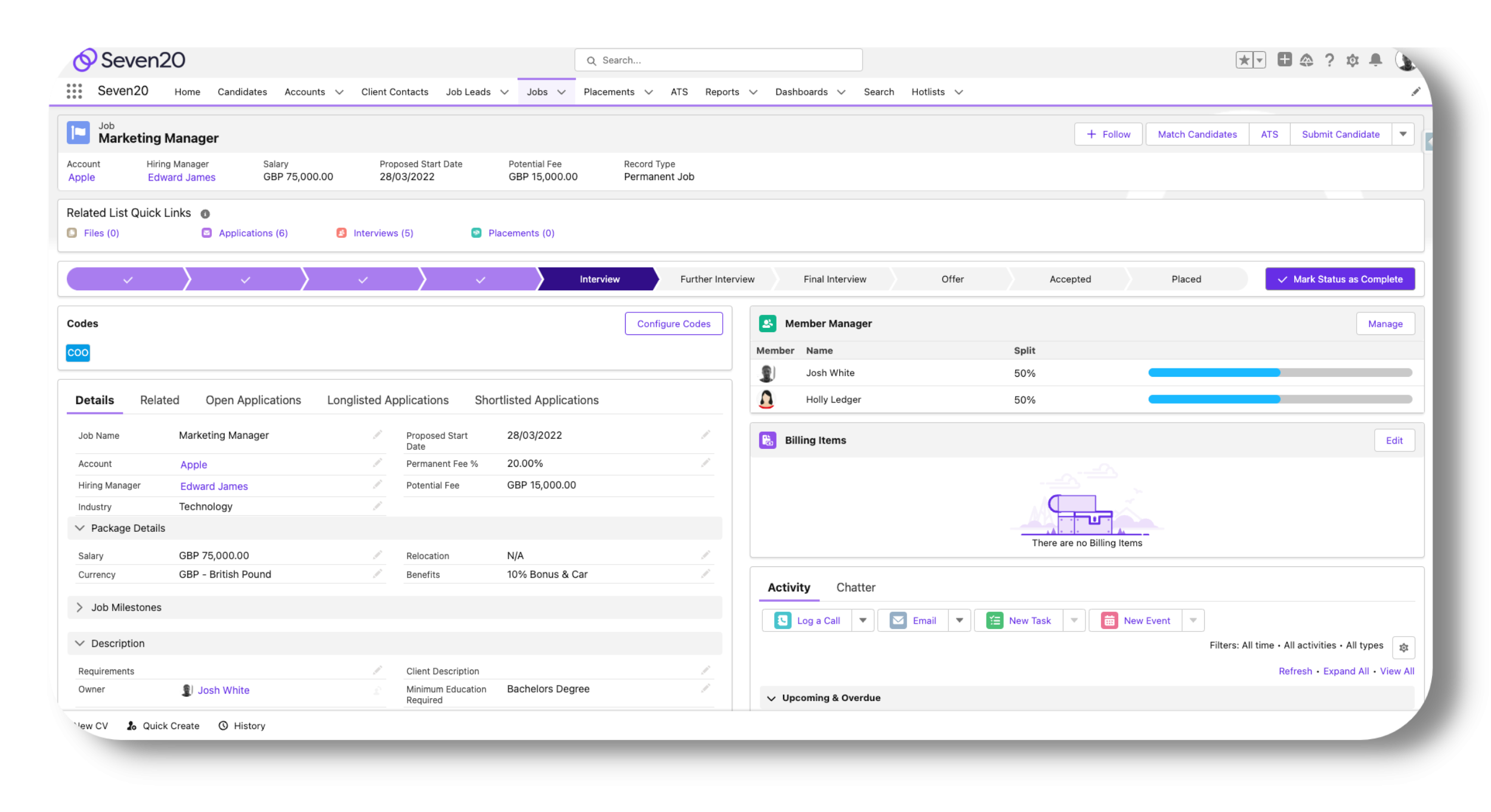 Through a mix of automation, tailored workflows, tasks and reminders, Seven20 makes the recruitment process dynamic and guarantees less clicks for higher productivity across your business.